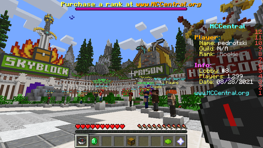The second Minecraft server on this list is Minecraft Central, which offers a lot of unique settings. To begin with, the Minecraft Central prison server is located in the center of the whole Minecraft world and can be accessed simply by typing in the single command which can take you there.