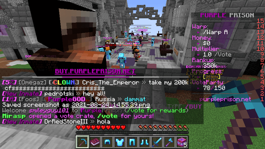 Let's start with the best Minecraft prison server out there, Purple Prison.