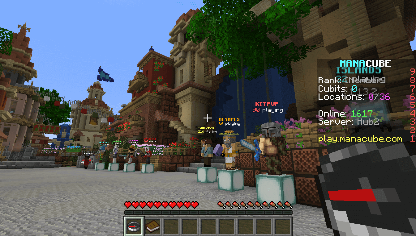 Manacube is a fairly new PVP server for Minecraft, and it has lots of unique features and a large player base (On average above 800+ players). The server has a prison mode where you begin in the big prison. The way it works is that you get penalized if you do anything bad, which means that you have to pay the money off your fine.