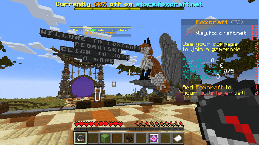 Foxcraft is another very well-known Minecraft PVP server that always seems to be getting more players. They have been around for a very long time, and they have lots of active users on them. Foxcraft is one of those servers that has a variety of different game modes that can be played on them, for example, there is the survival mode and the creative mode.
