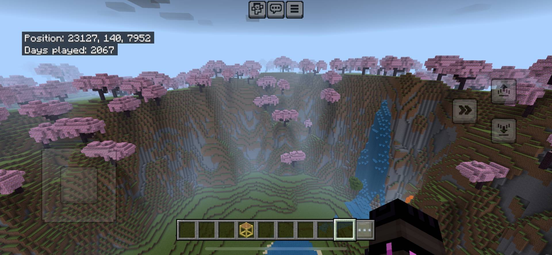 This seed features the largest cherry blossom biome ever discovered, with not one but two valleys connected by a cave system. Near spawn, you'll also find an ancient city and another beautiful valley, making this an explorer's dream.