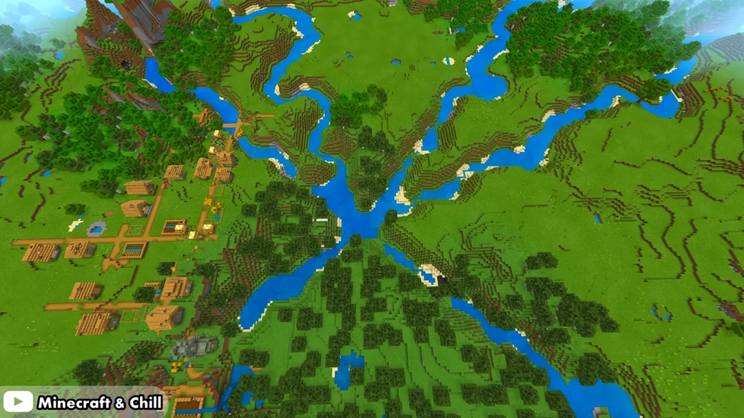 Features an incredible cave system with unique formations and vast underground chambers. Cave explorers and miners will find endless adventures in this seed's depths.