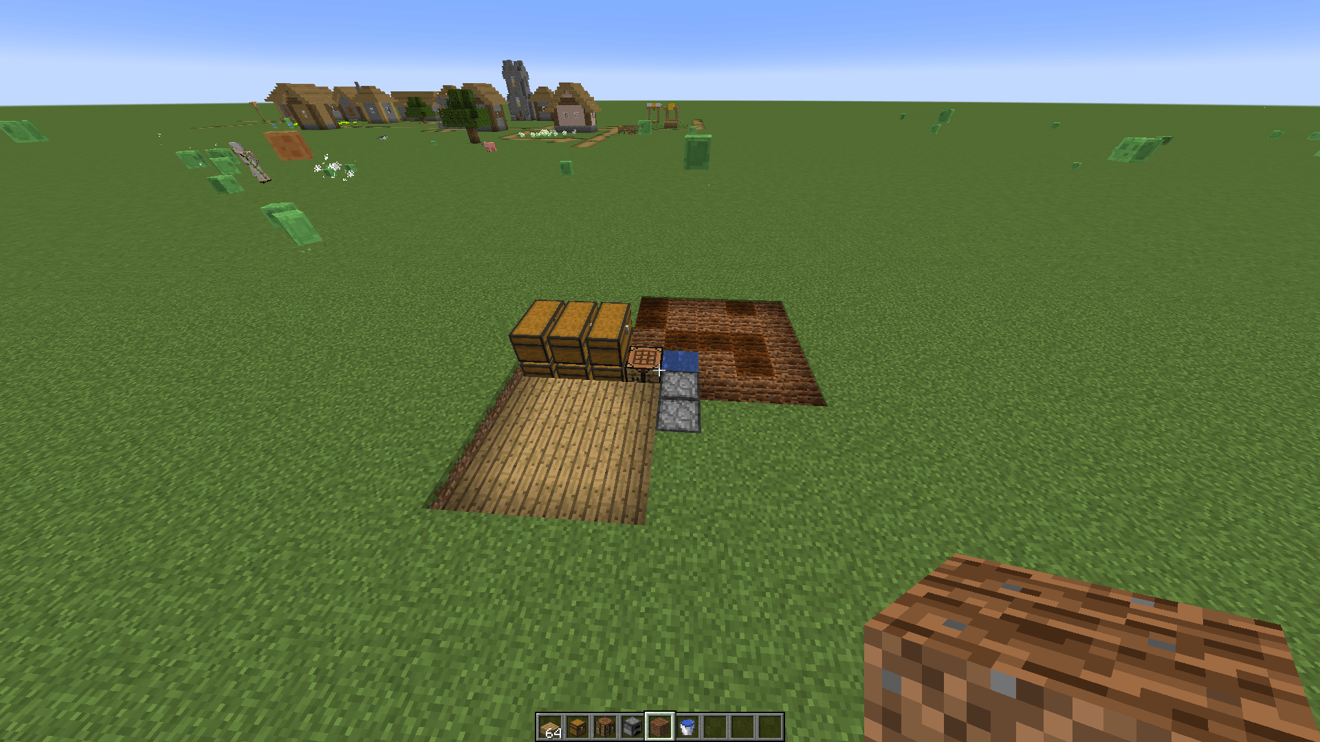 - Enough room to store my items, such as a chest or two chests with the crafting table on one side of them. What this does is keep me from losing everything while working on something else!