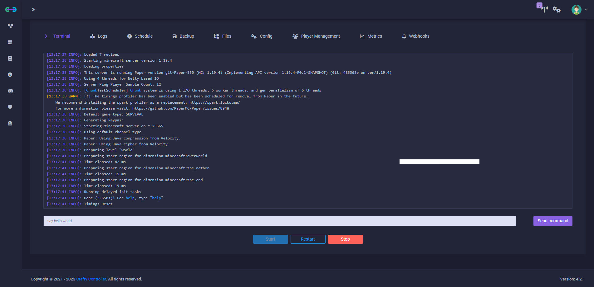 Crafty Controller represents a modern take on game server management with a focus on Minecraft servers. Built with Python and React, it offers a clean interface and Docker support for containerized deployments. The project shows promise with active development and responsive maintainers. Unfortunately, frequent breaking changes and incomplete features make it unsuitable for production environments where stability is crucial.