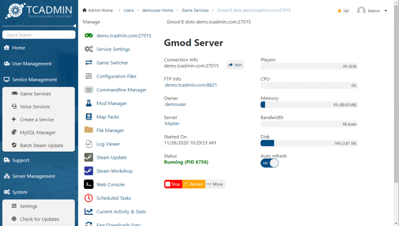 TCAdmin remains the industry standard for commercial Windows game hosting despite its dated interface. Its proven reliability over 15+ years makes it the choice of major providers like Streamline-Servers. The panel excels at hosting company features like billing integration and reseller systems. While the interface shows its age, TCAdmin delivers unmatched stability for business use.
