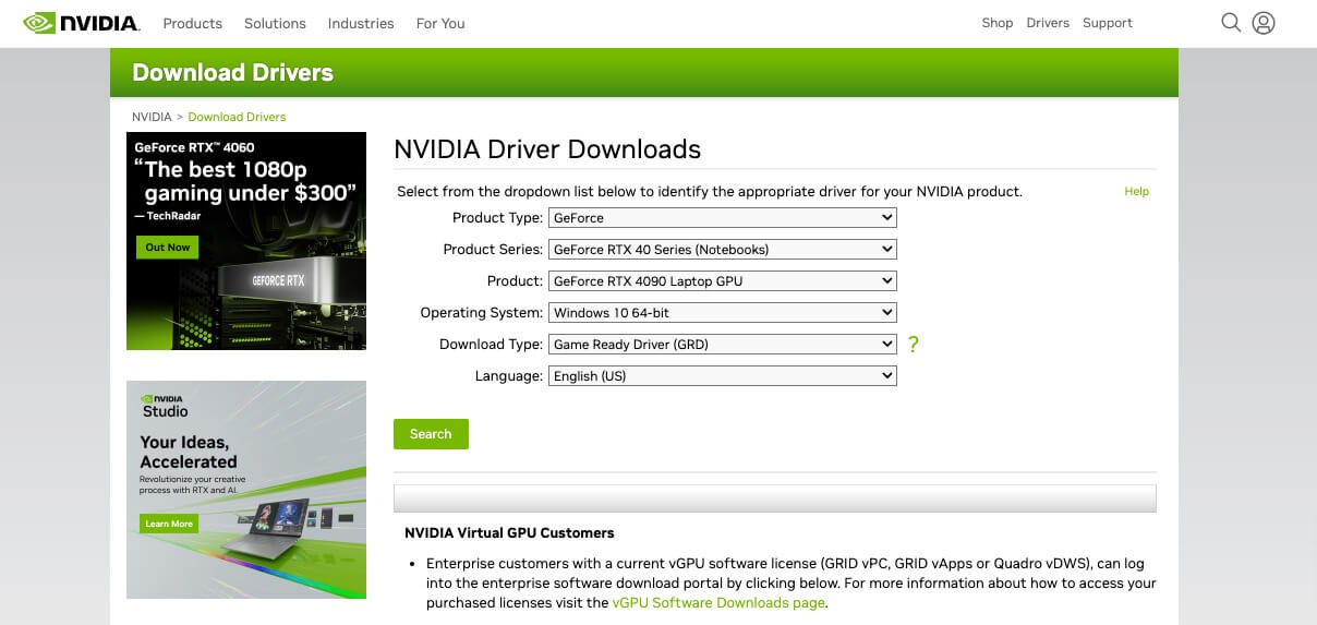 Here are the links to the most common video card manufactures, so you can download the latest GPU drivers.
