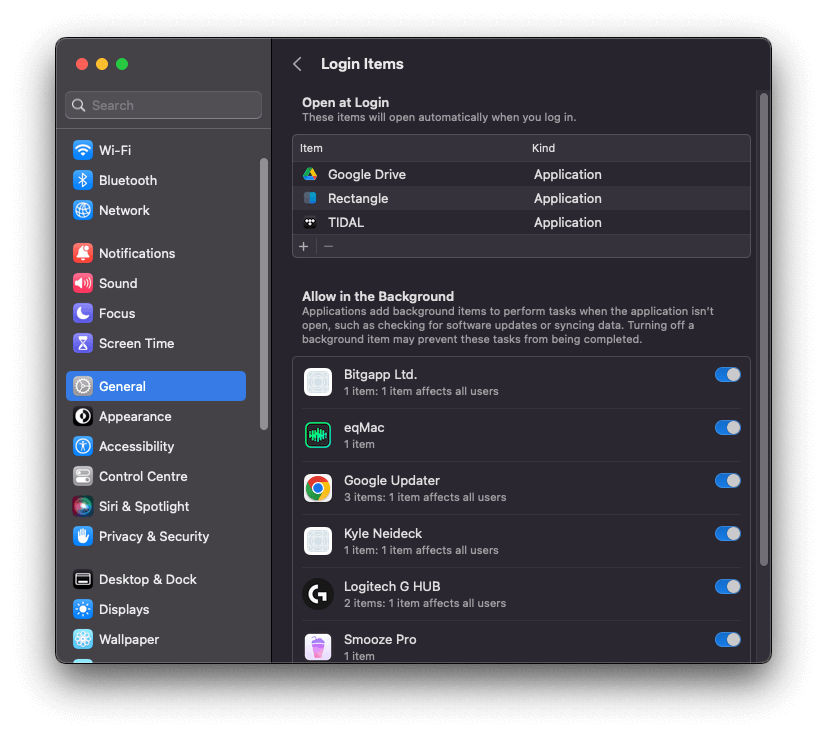 Login Itemsto see a list of all the programs that start up with your Mac. - To disable a program, select it and then click on the