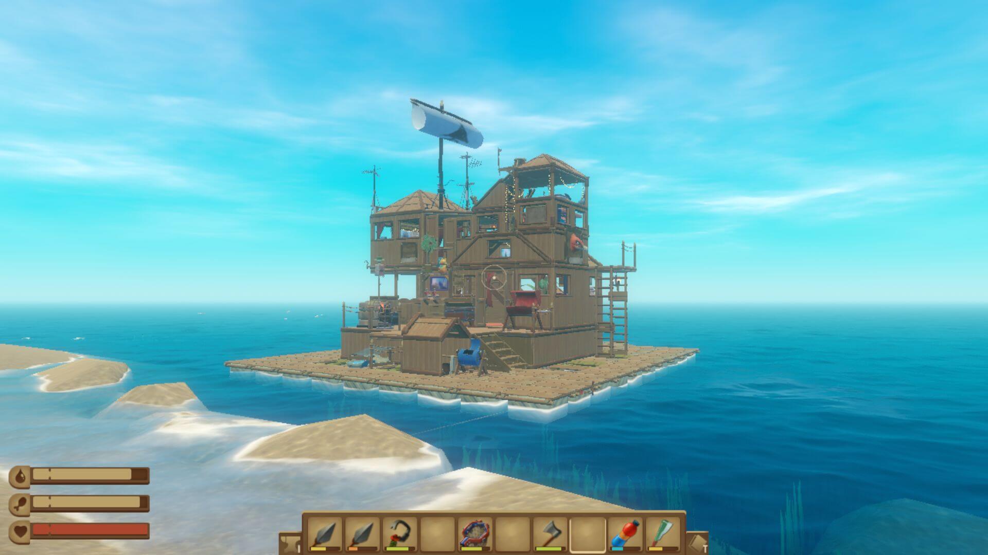 Raft throws you and your friends into an epic oceanic adventure! Alone or together, players battle to survive a perilous voyage across a vast sea. Trapped on a small raft with nothing but a hook made of old plastic, players awake on a vast, blue ocean totally alone and with no land in sight. Gather debris, scavenge reefs, and build your own floating home, but be wary of the man-eating sharks. Expand your raft from a simple wreckage to a buoyant mansion, navigate towards new destinations, overcome challenges, and uncover the story of previous inhabitants. Whether you're diving for resources or fighting off dangers, Raft offers a unique survival experience on the open sea.