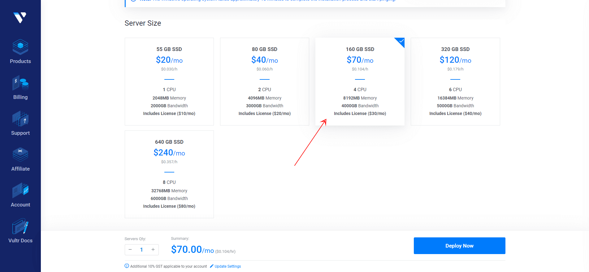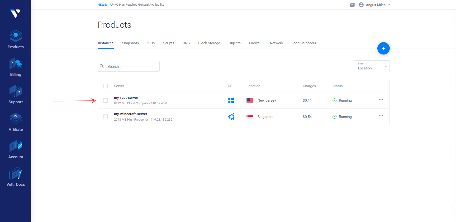 Now that you have created your Vultr account and have logged in, click on “Products” on the left-hand side of the screen.