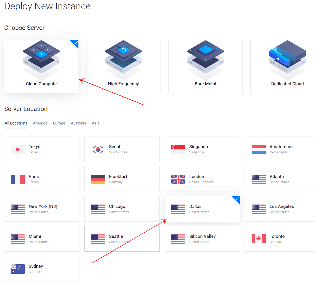 The next thing to do is select the type of server and where in the world it would best suit you. Select the "Cloud Compute" option as this will allow you to use a part of an entire dedicated server as that would be much more expensive.