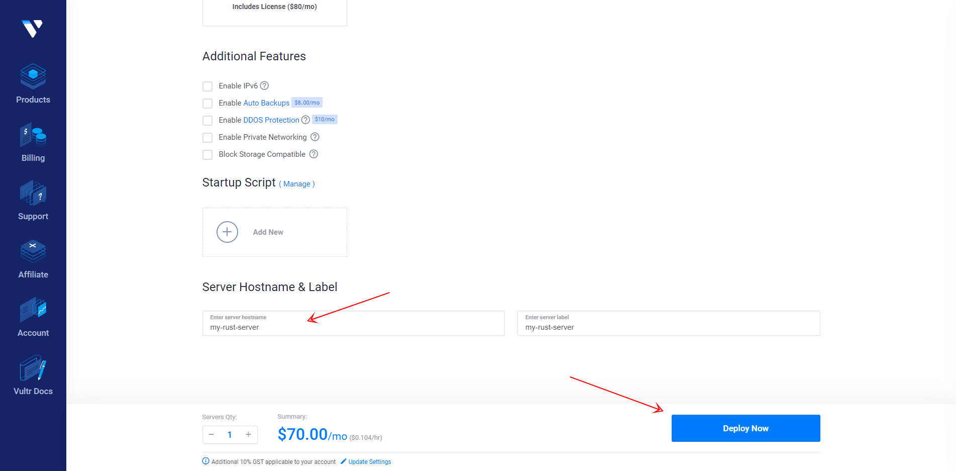 The first thing you need to do to get your own dedicated Rust server is to create an account at Vultr. If you use this link you will get a free $25 credit. This will help offset the cost of paying for the server while you get people on.