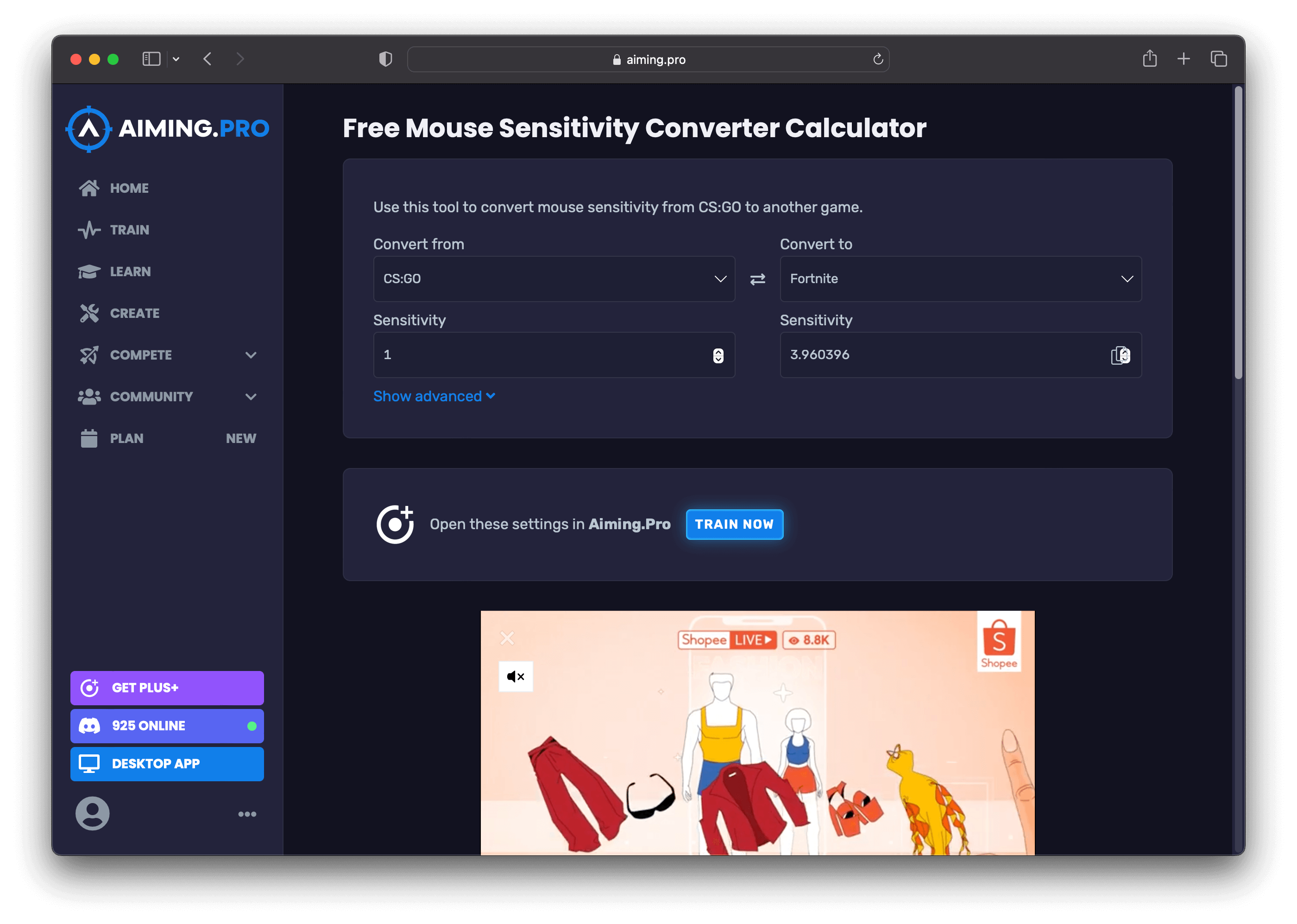 - Aiming.Pro: Best for those wanting aim training alongside conversions