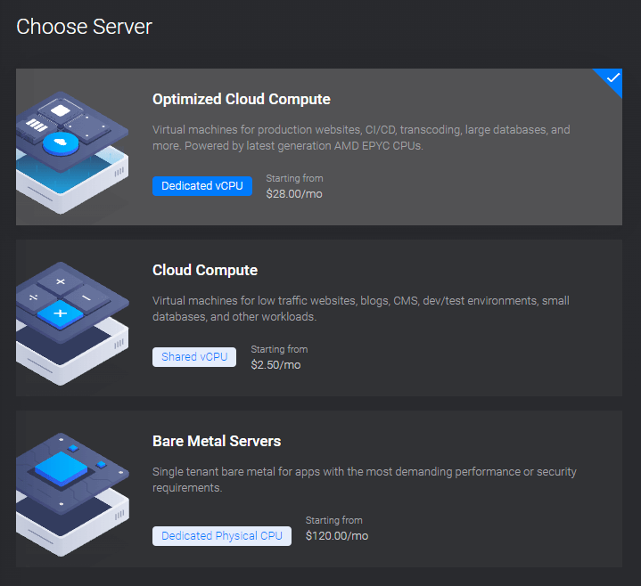 Which server you select depends entirely on what you're using the server for. If you are running a small gaming network with friends or for low-traffic web hosting, then their Compute plan is good enough for you.