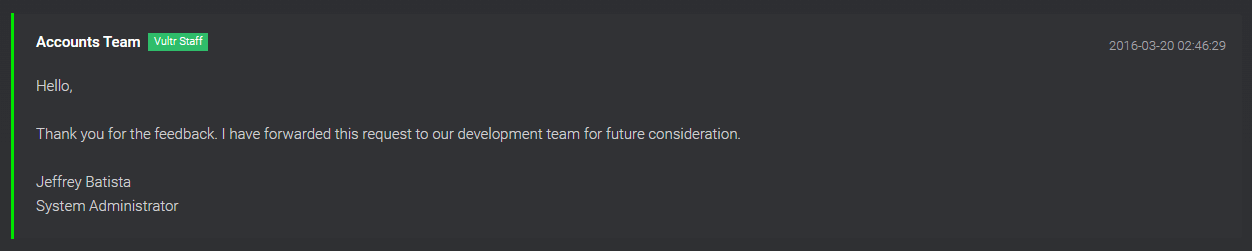 Customer Support from Vultr